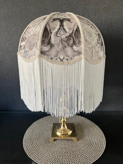 – Jag tycker om lampskärmar som ger en varm känsla, och jag söker gärna en blandning av gammal farmorslampa och ett modernare uttryck. Med fransar och band får även en enfärgad skärm mer personlighet.