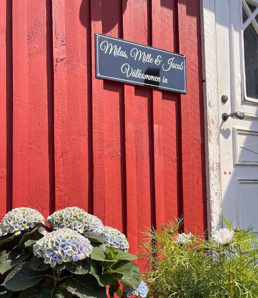– Vi kan anpassa formen på själva skylten, alltså att den grafiska designen ser precis likadan ut eller åtminstone påminner om varandra. Det gör att en adresskylt på villan och en skylt på till exempel attefallshuset lätt och kul att kombinera. Skylten går att anpassa till vilken form och utseende som helst, beroende på vad som efterfrågas. Samma sak gäller om man vill ha skyltar inuti hemmet, kanske med en sorts adresskylt med bilder på barnen till deras respektive rum, berättar Jonas Nilsson.