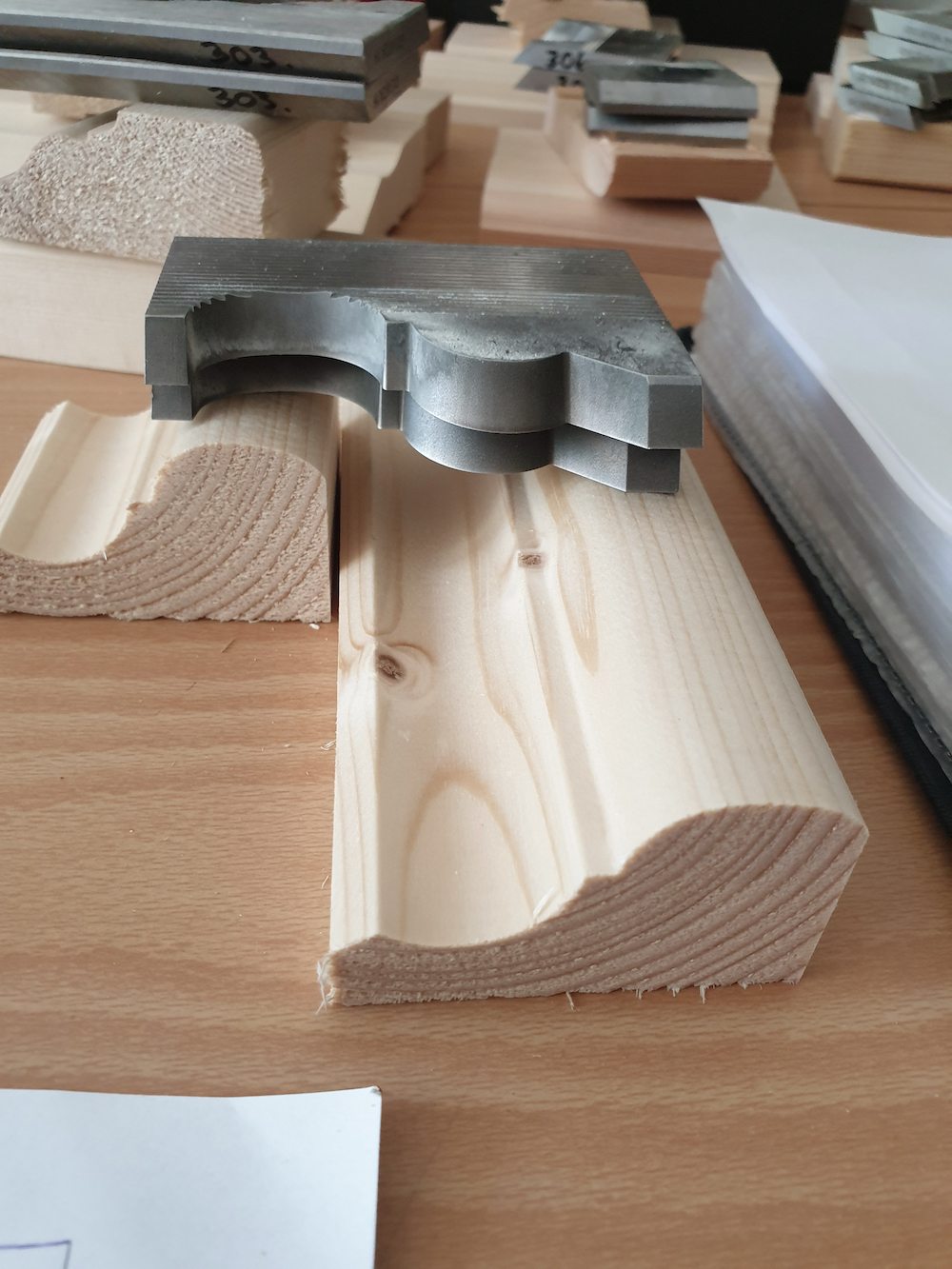 – Antingen utgår vi från en gammal profil som hittats och gör en kopia, eller går vi igenom våra 400 alternativ på plats och hittar en liknande. Vi hyvlar efter order, vilket innebär att våra profiler också att justera i bredd och tjocklek, efter smak och tycke.