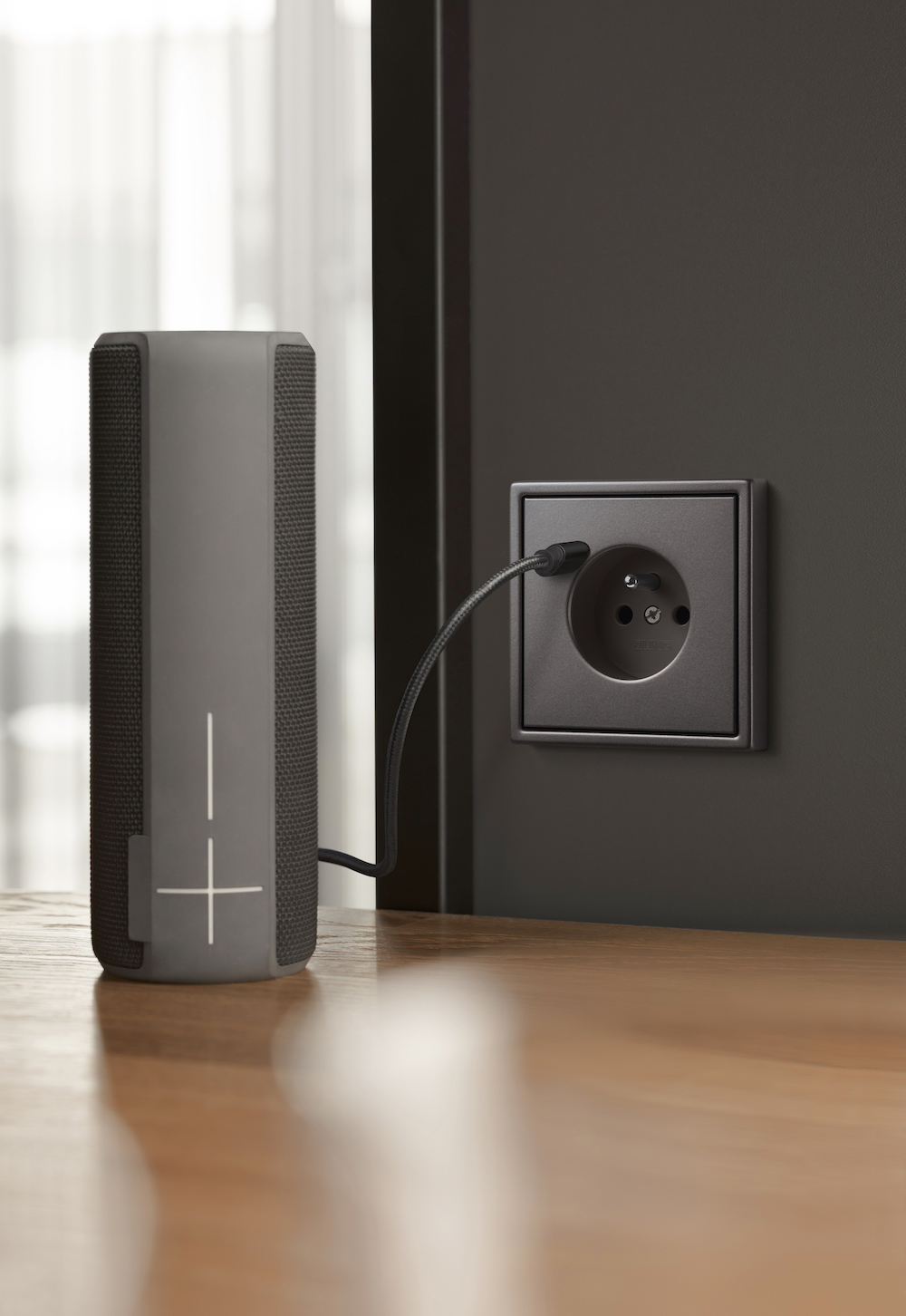 Jung, ett klassiskt tyskt familjeföretag med verksamhet i elbranschen sedan 1912, har tagit fram en serie strömbrytare och vägguttag i olika metaller och finish: Rostfritt stål, ljus eller svart aluminium, blank krom, klassisk mässing antik mässing, antracit och, till och med, guld.