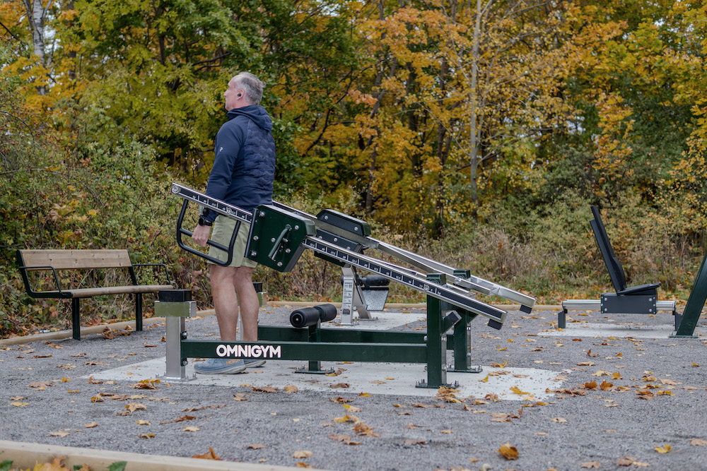 Det finska företaget Omnigym tillverkar träningsutrustning för utomhusbruk. Juho berättar att maskinerna är utvecklade för att vara säkra och lätta att använda, även för nybörjare.