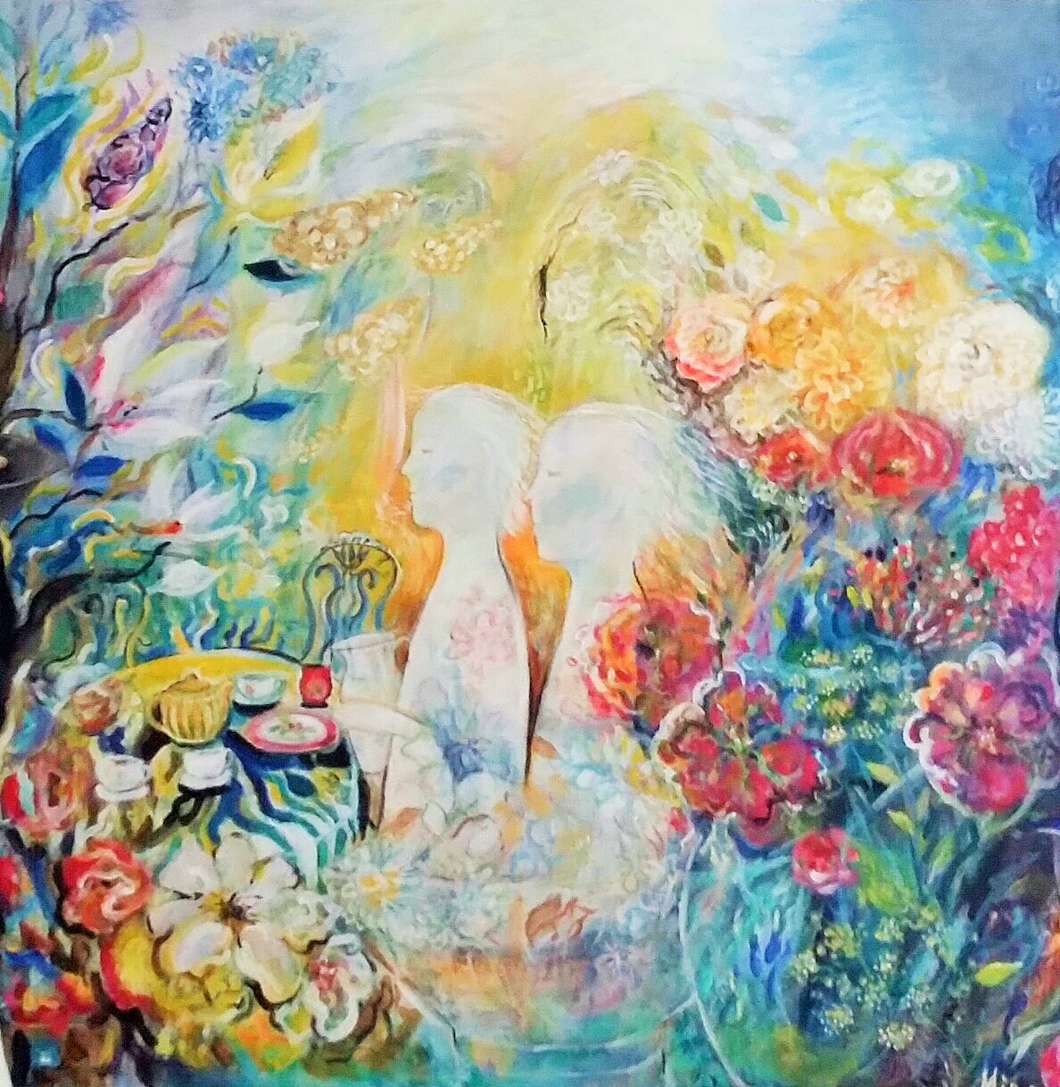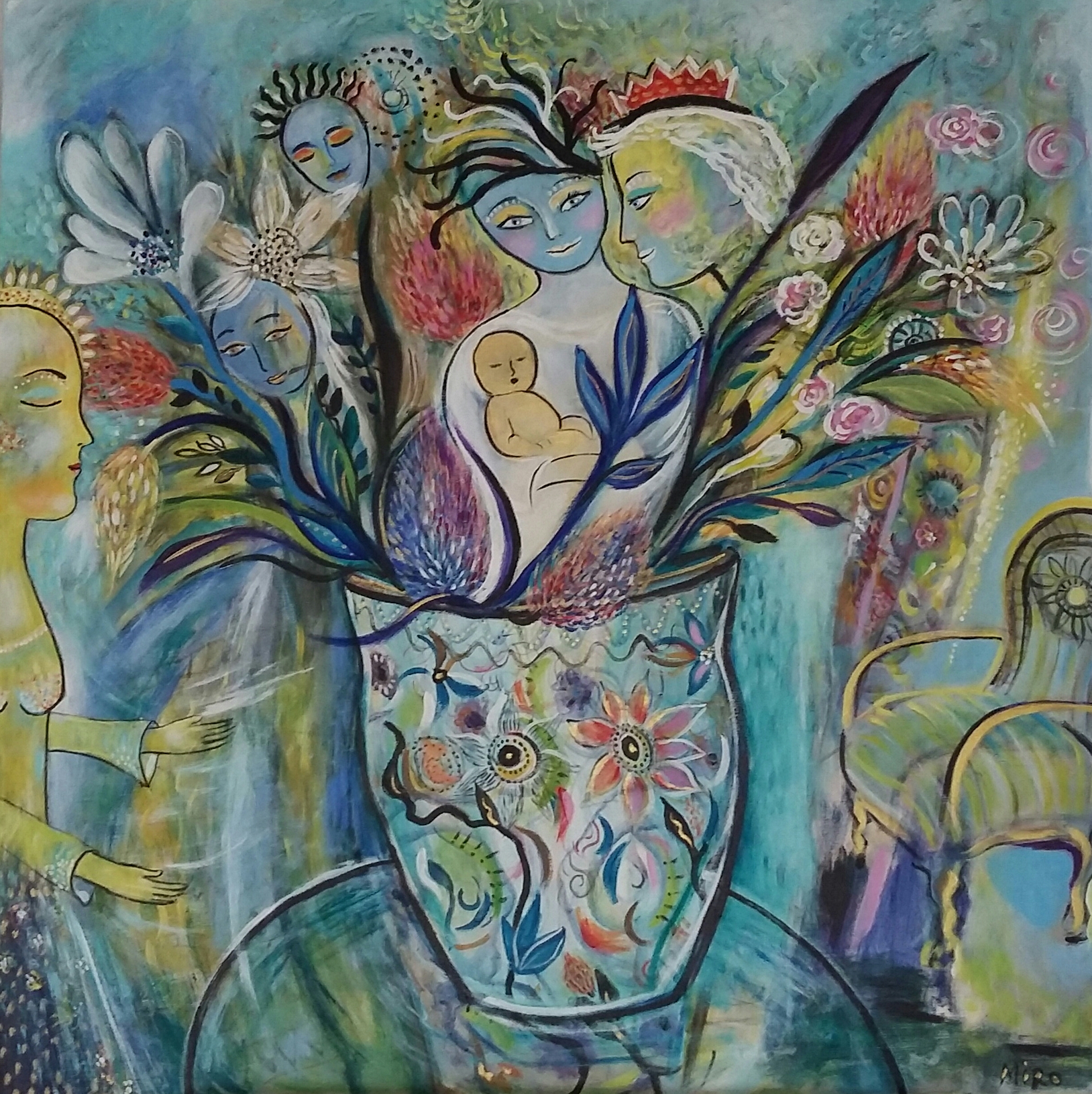 Det viktigaste för henne med konsten är glädjen, leken och kärleken. Och hon vill gärna dela den i denna värld som är så upp och ner. Hon har också målat en fantastisk målning, som heter Sången vi minns. Som målats med grova ömsom mjuka penseldrag och som tar ett steg bak i tiden och ett i framtiden.