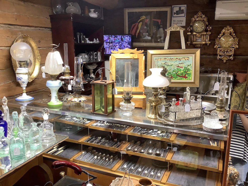Det som säljs mest i antikladan är porslin, lampor och tavlor. Men Carlo berättar att många besökare kommer för känslan och upplevelsen. För att strosa runt i en annan tid.