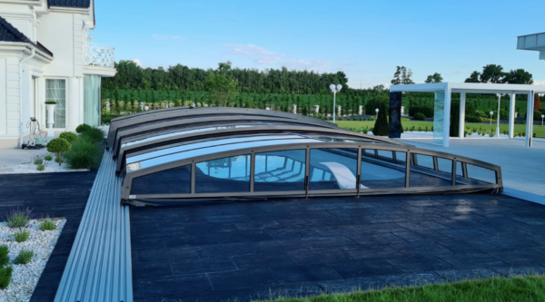 Ålesund från Nordenspa är ett lågt och exklusivt tak utformat i klarglas (3/4mm). Under taket finns det fortfarande gott om utrymme för att simma och röra sig. Ålesund är ett mycket stabilt tak gjort i aluminium vars design är framtagen med inspiration från Nordens vackra landskap.